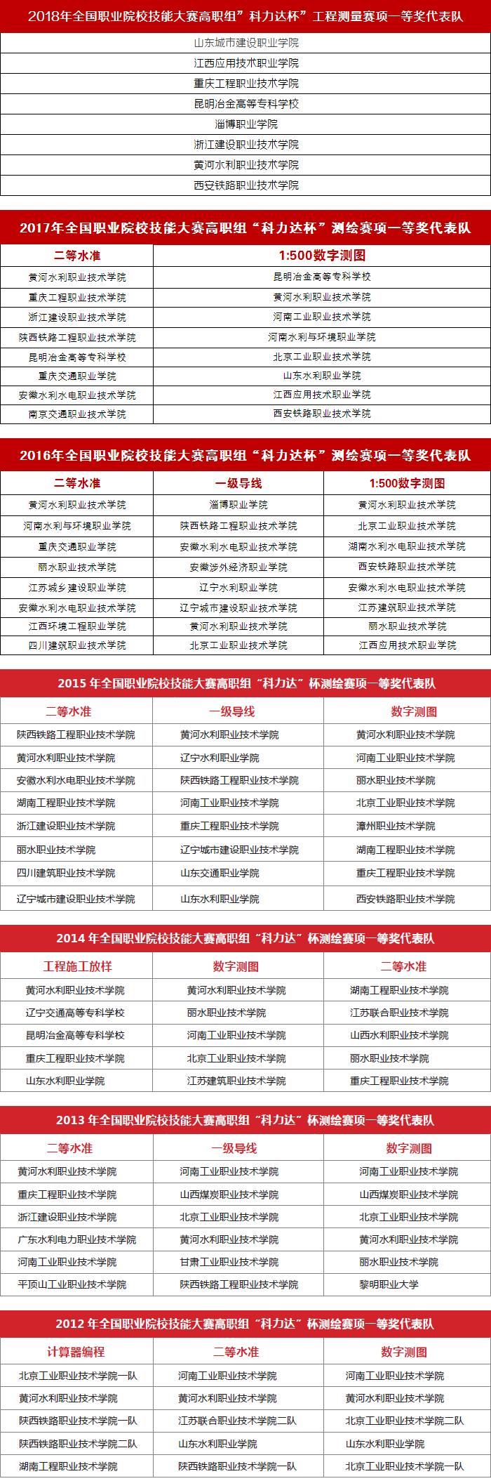 全國職業(yè)技能大賽由31個部委主辦,包括15個大類,分為98個競賽項目,其中全國職業(yè)院校技能大賽高職組測繪競賽(以下簡稱“大賽”)作為其中一個分項,是測繪地理信息職業(yè)教育領(lǐng)域規(guī)格最高、水平最高、參與范圍最廣的一項賽事。自2012年以來,科力達已經(jīng)連續(xù)四年總冠名并贊助大賽賽項,今年是第五個年頭。